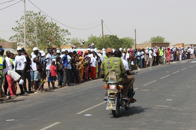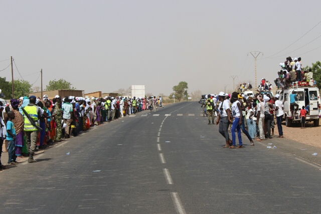 As I approached a town I noticed crowds of people lining the road ahead. Has word got out I am coming? I went through with the crowd cheering and shouting. I stopped and looked back and they seemed to have lost interest in me. I asked a friendly policeman what’s happening, he said the president of Senegal is coming. What a great photo opportunity so I parked up.