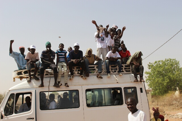 I was told to turn around and follow the car. He led me to the edge of town and left up a dirt track, there we stopped I have seen those movies so knew what to expect, instead he pointed to a bus 300m away across sandy waste ground and indicated I should go the same way, around the town not through it. He did ask for a cadeaux at this stage but I politely refused.